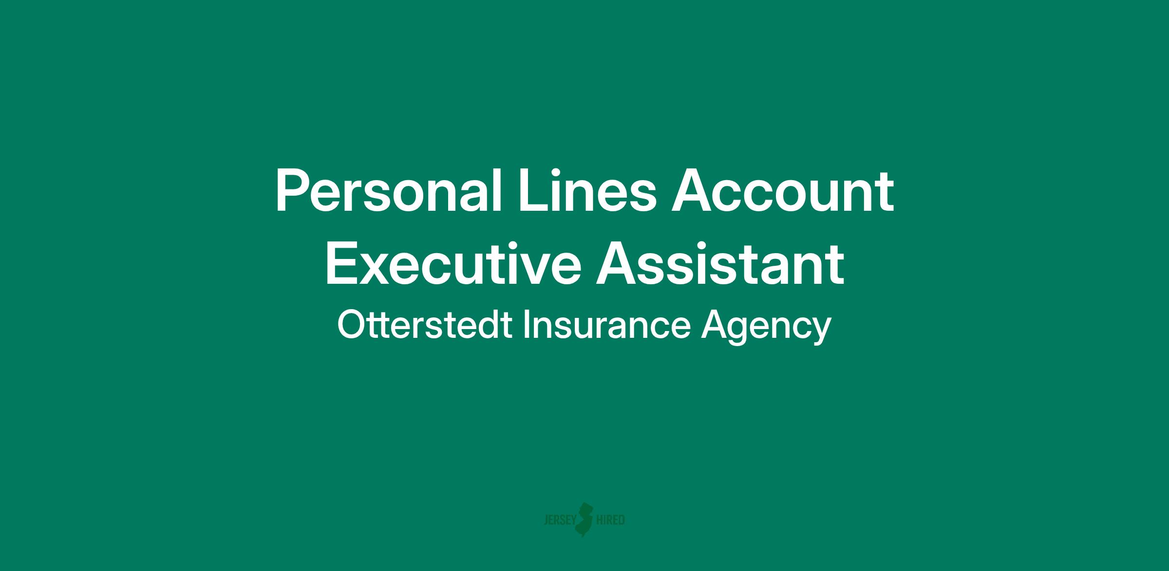 Position Overview: As a Personal Lines Account Executive Assistant at Otterstedt Agency you will be responsible for assisting the personal lines department in order to create a more efficient workflow that enables our account executives to be more proactive and consultative in the handling of their book of business.