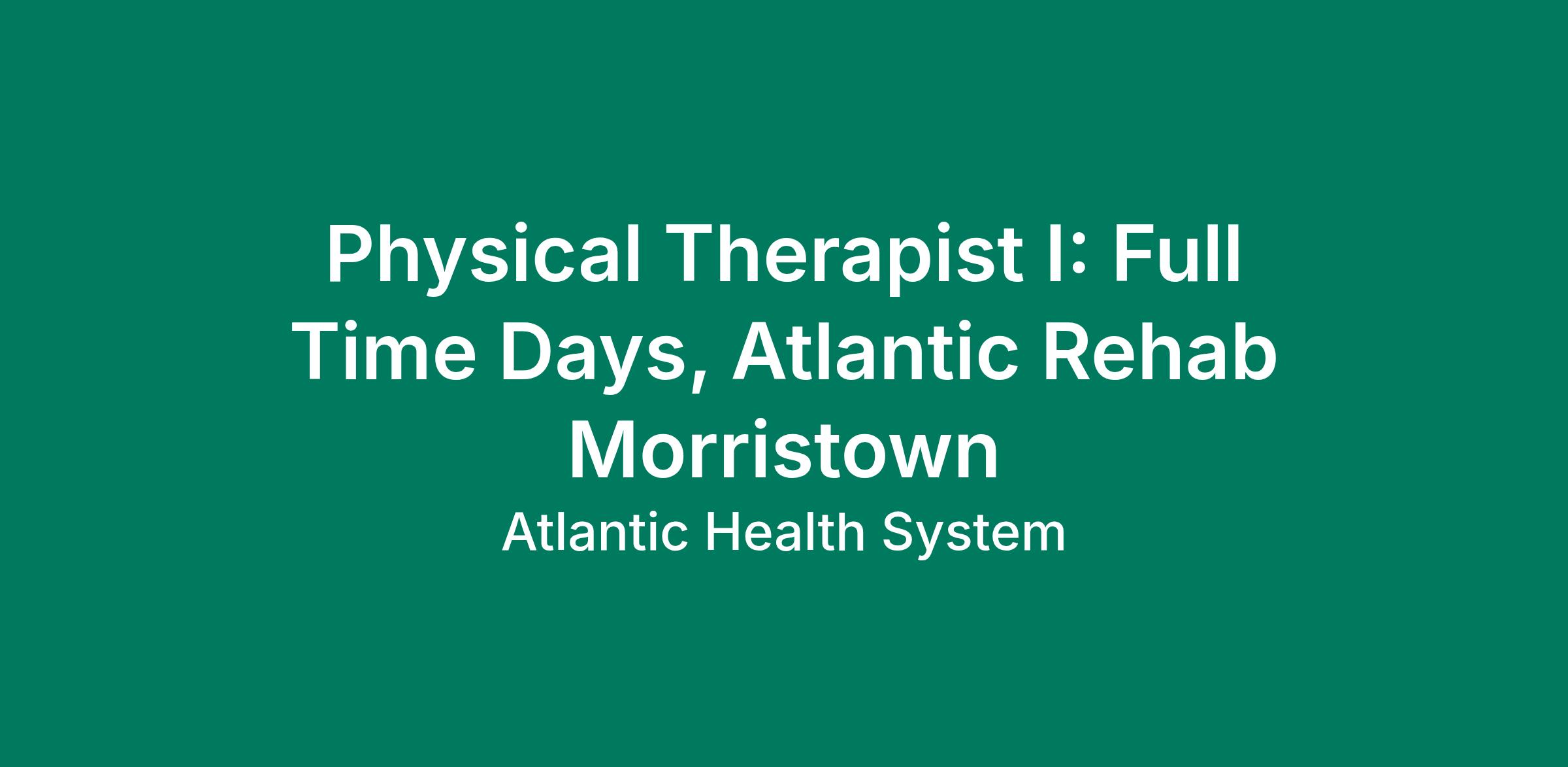 Physical Therapist I: Full Time Days, Atlantic Rehab Morristown