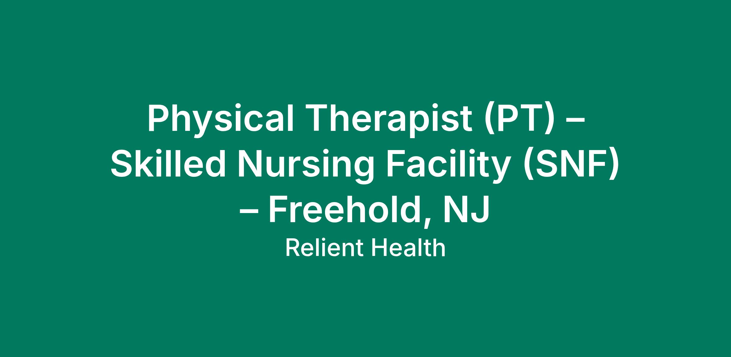 Physical Therapist (PT) – Skilled Nursing Facility (SNF) – Freehold, NJ