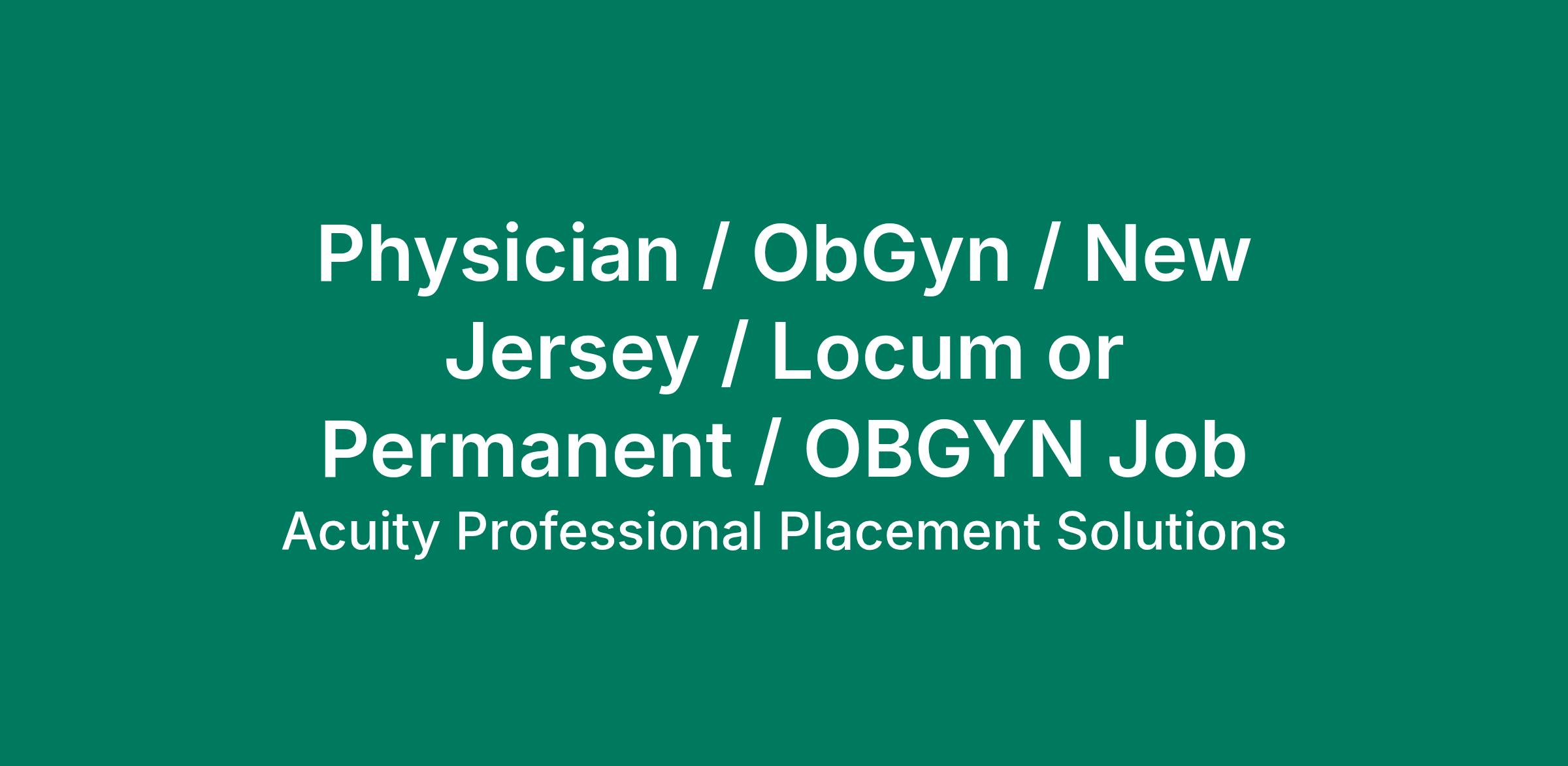 Location: Clifton, New Jersey Type: Direct Hire Job Physician / OBGYN / Traditional We are a private practice looking to grow our practice to the next level. We strive to make every woman who walks through our door feel like she is getting the best medical care possible in a warm, friendly, and safe environment. The nurse midwife we seek is someone who will establish a meaningful rapport with her patients, helping patients to feel comfortable and cared for. Physician / OBGYN / Traditional Benefits: We are seeking a full-time OB/GYN physician for employment. Our newly renovated, AIUM-accredited OB/GYN private practice. Health, Vision & Dental AD&D LTD & STD CME Time off with reimbursement Malpractice with occurence Flexible call schedule 1:4 PTO- 30 day Company Holidays Defined benefit retirement plan Physician / OBGYN / Traditional Among the many services offered we excel in Advanced Gynecologic Laparoscopic Surgery (eg. Extensive Resection of Endometriosis off of colon, and Bilateral Ureterolysis to completely rid of endometriosis.) We are one of very few gynecological surgeons capable to perform such procedures in the entire NY metropolitan area. We are also fully trained to operate the Robot in order to offer a full range of services in minimally invasive surgery for women in all stages of their lives. We are also known for our success in complicated obstetrical & gynecological surgeries. For instance, many women having the diagnosis of multiple cesarean sections or placenta previa/acreta/percreta are told by their obstetricians to seek their care elsewhere. Taking care of a woman with her 10th cesarean or a very complicated placenta acreta/percreta is a common practice for him. Physician / OBGYN / Traditional Requirements Current Board Certification in General OBGYN Active NJ Medical License (D.O. or M.D.) Four years of OB GYN residency Trustworthy and compassionate character Impeccable bedside manner Strong communication skills Physician / OBGYN / Traditional If you have experience in: Labor and Delivery Obstetrics Delivery Physician Medical Doctor If you are interested in this position apply at: Apply Now More Info The post OBGYN appeared first on Acuity Healthcare .