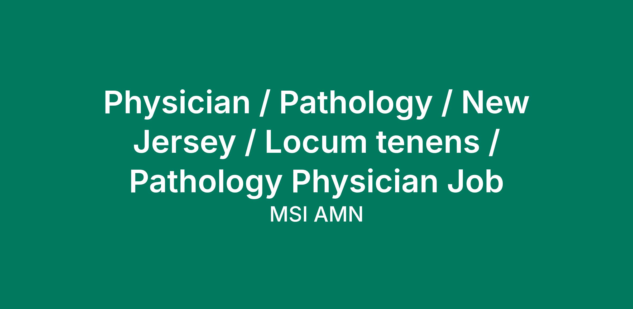 Job Description & Requirements Pathology Physician StartDate: ASAP Pay Rate: $139.68 - $151.20 This facility is seeking a Pathology Physician for locum tenens support as they look to fill a current need. Details and requirements for this opportunity: Schedule: Monday-Friday, 8am-5pm coverage needed on site daily for the above-mentioned services. On call? Yes. Practice Setting: Inpatient and Outpatient Type of cases and required procedures: Anatomic Pathology, Surgical Pathology, frozen section analysis Credentialing timeframe: 60 Days EMR: Epic Certification required: Board certification in anatomic pathology is required Licensure required: Must have active New Jersey license or active compact letter Facility Location The home of Rutgers University, this bustling college town boasts the countrys largest medical school, two premiere academic hospitals and an abundance of cultural activities. Less than an hours drive from New York City, New Brunswick offers innovative theatre, arts and entertainment, a vibrant downtown, great shopping and a relaxed pace of living. Job Benefits AMN Healthcare typically arranges medical or dental malpractice insurance for the contractor providers we match to client opportunities. In addition, our locum tenens can receive highly competitive pay and a dedicated team that handles all travel, lodging, rentals and transportation needs. Additionally, our Physician Mobility initiative decreases the amount of time you must wait to work at a facility where you are presented or have worked from 24 months to 6 months. About the Company At AMN Healthcare, we strive to be recognized as the most trusted, innovative, and influential force in helping healthcare organizations provide quality patient care that continually evolves to make healthcare more human, more effective, and more achievable. Pathologist, Pathology Lab, Pathology, Laboratory, Cytologic, Pathology, Healthcare, Health Care, Medical, Medical Technology, Patient Care