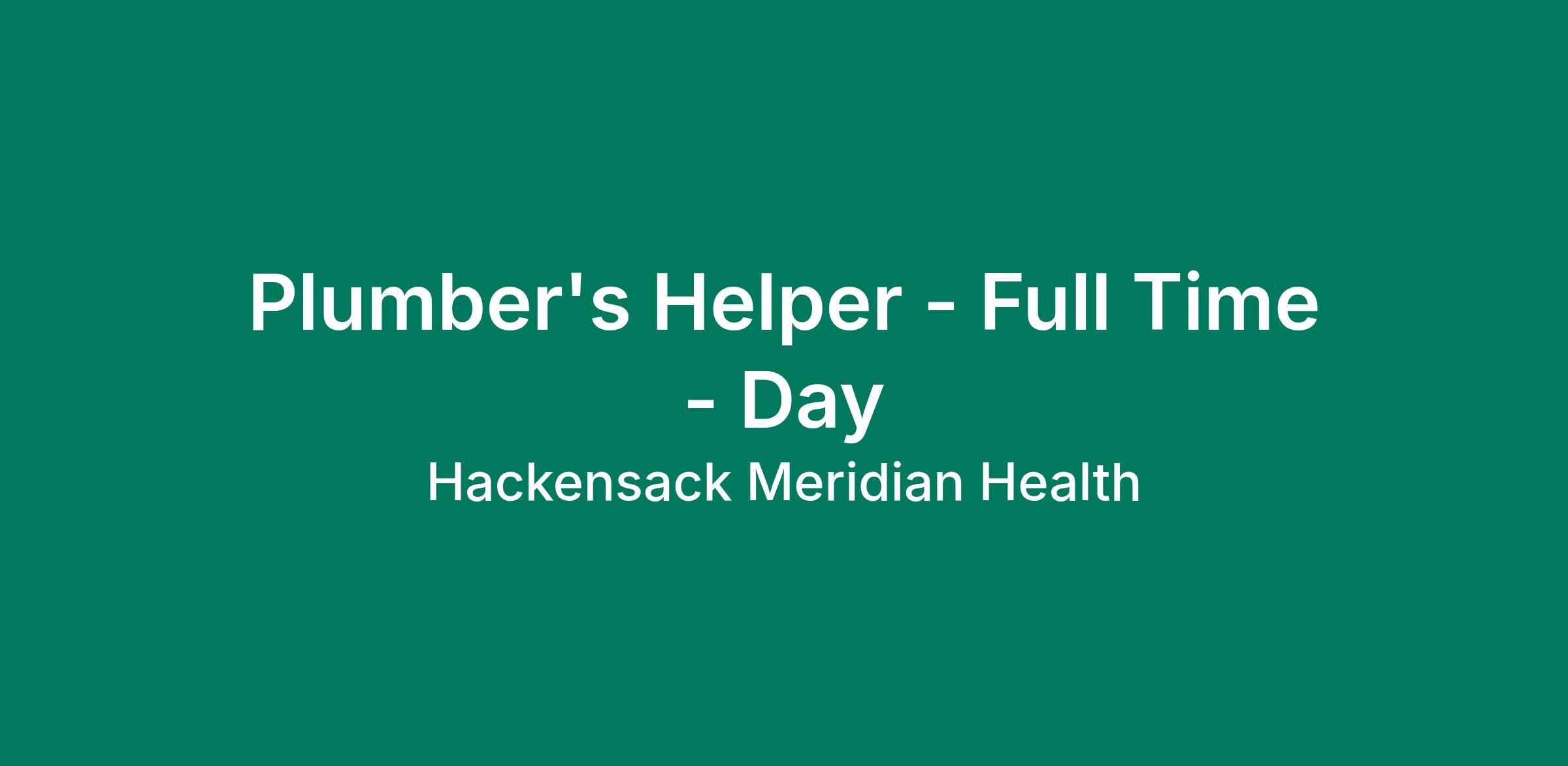 A day in the life of a Plumber's Helper at Hackensack Meridian Health includes: