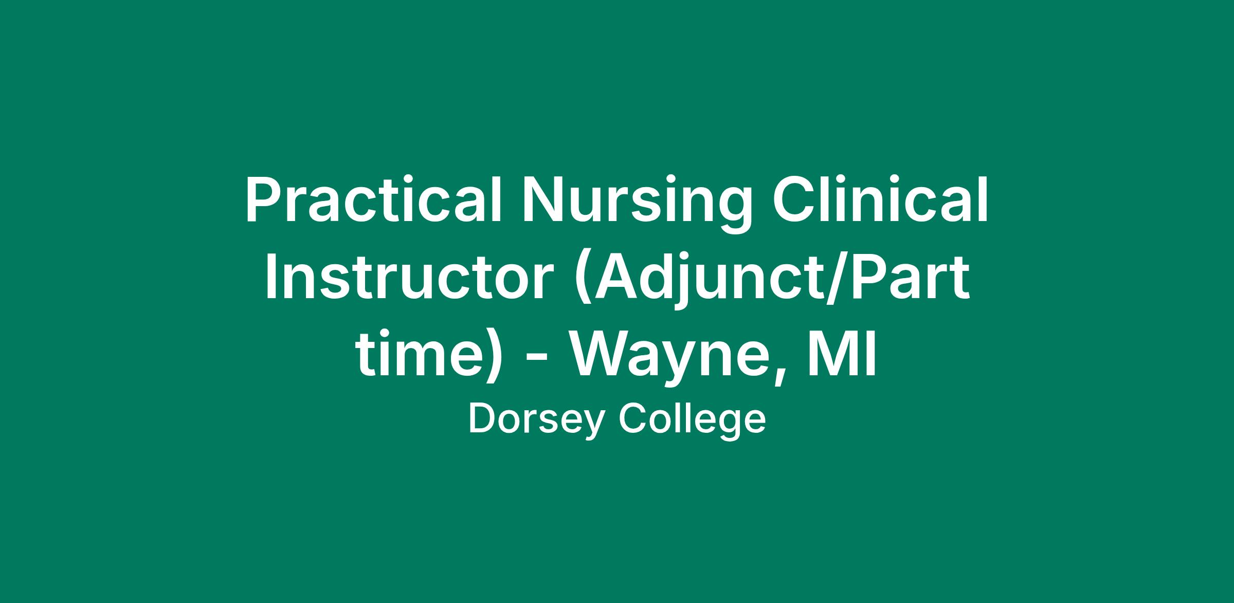 The Practical Nursing Clinical Instructor is entrusted with imparting the knowledge and skill each student needs to be successful by providing quality delivery of assigned courses while ensuring that all students achieve competency in the course objectives. Instructors evaluate and resolve student questions, issues, and problems, and ensure appropriate action is taken to the satisfaction of the student, Dorsey Schools, and/or regulatory agencies in compliance with policies, procedures and legal requirements. Instructors are to be motivating, fair, impartial, creative, dedicated, and professional. The Practical Nursing Clinical Instructors will supervise, lead, and teach Practical Nursing students at a “to be determined” medical facility.