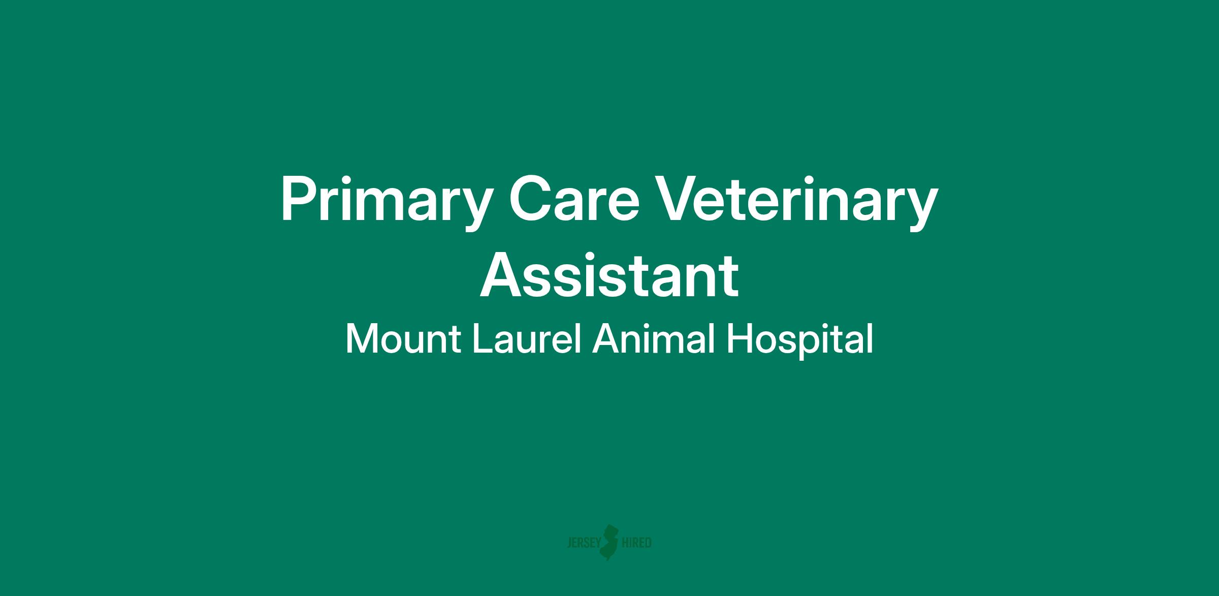 Mount Laurel Animal Hospital supports a large, fast-paced, multi-doctor primary care service comprised of a team of dedicated individuals. The role of a Primary Care Veterinary Assistant includes, but is not limited to, obtaining medical histories, maintaining the flow of appointments throughout the day, taking radiographs, performing venipuncture, client education, and more. The veterinary technician must be able to work with cats, dogs and occasionally exotic species.
