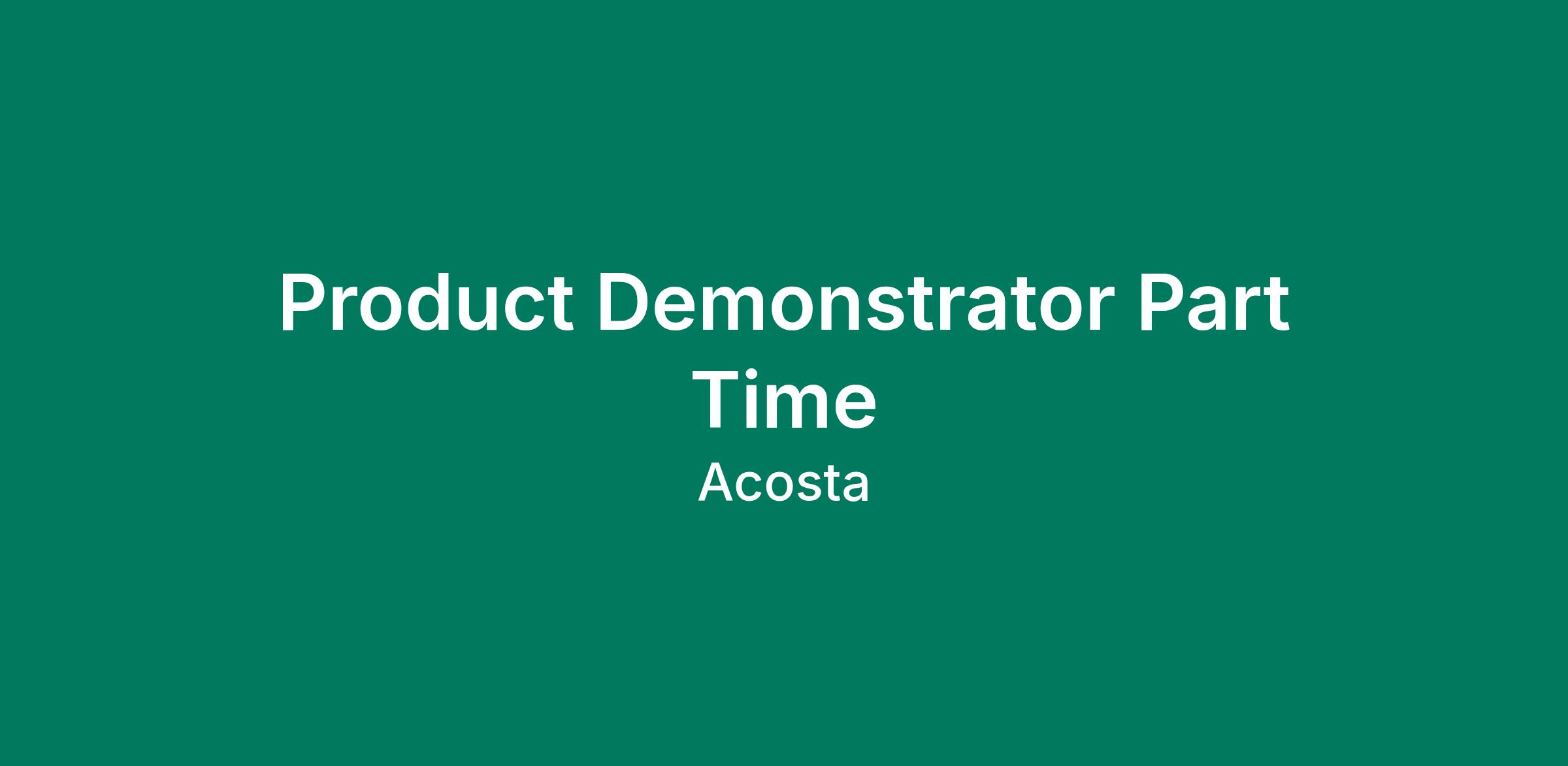 The Associate is responsible for completing in-store food and non-food demonstrations. Acquires and maintains knowledge of products represented. Prepares, serves, and breaks down product, equipment, and supplies. Intercepts consumers and demonstrates products in a professional manner. Maintains an overall professional appearance consistent with the requirements of the job.