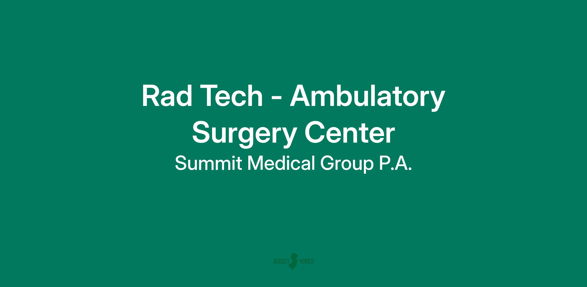 Radiology Technician, Ambulatory Surgery Center, OR