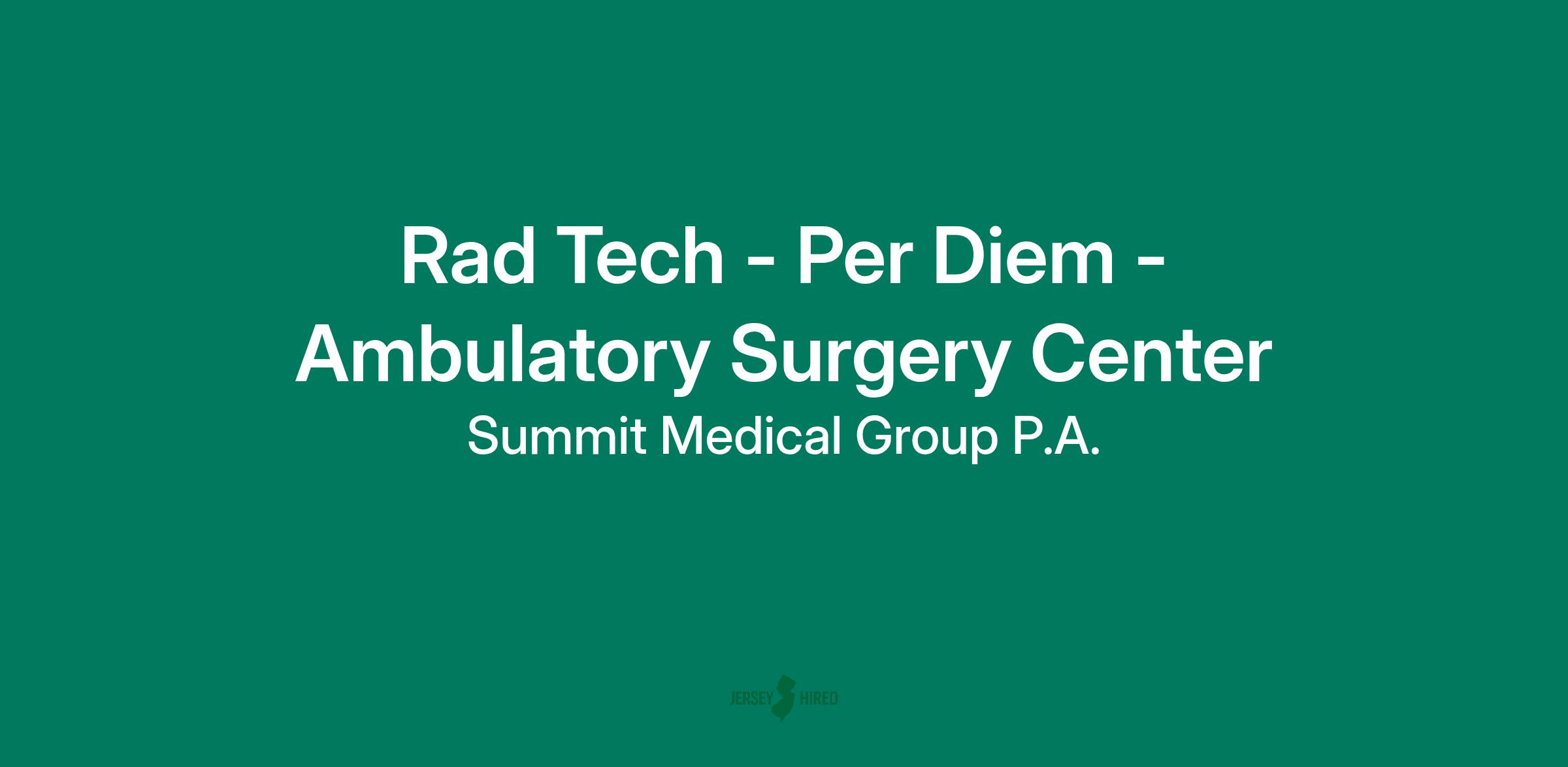 Radiology Technician, Ambulatory Surgery Center, OR