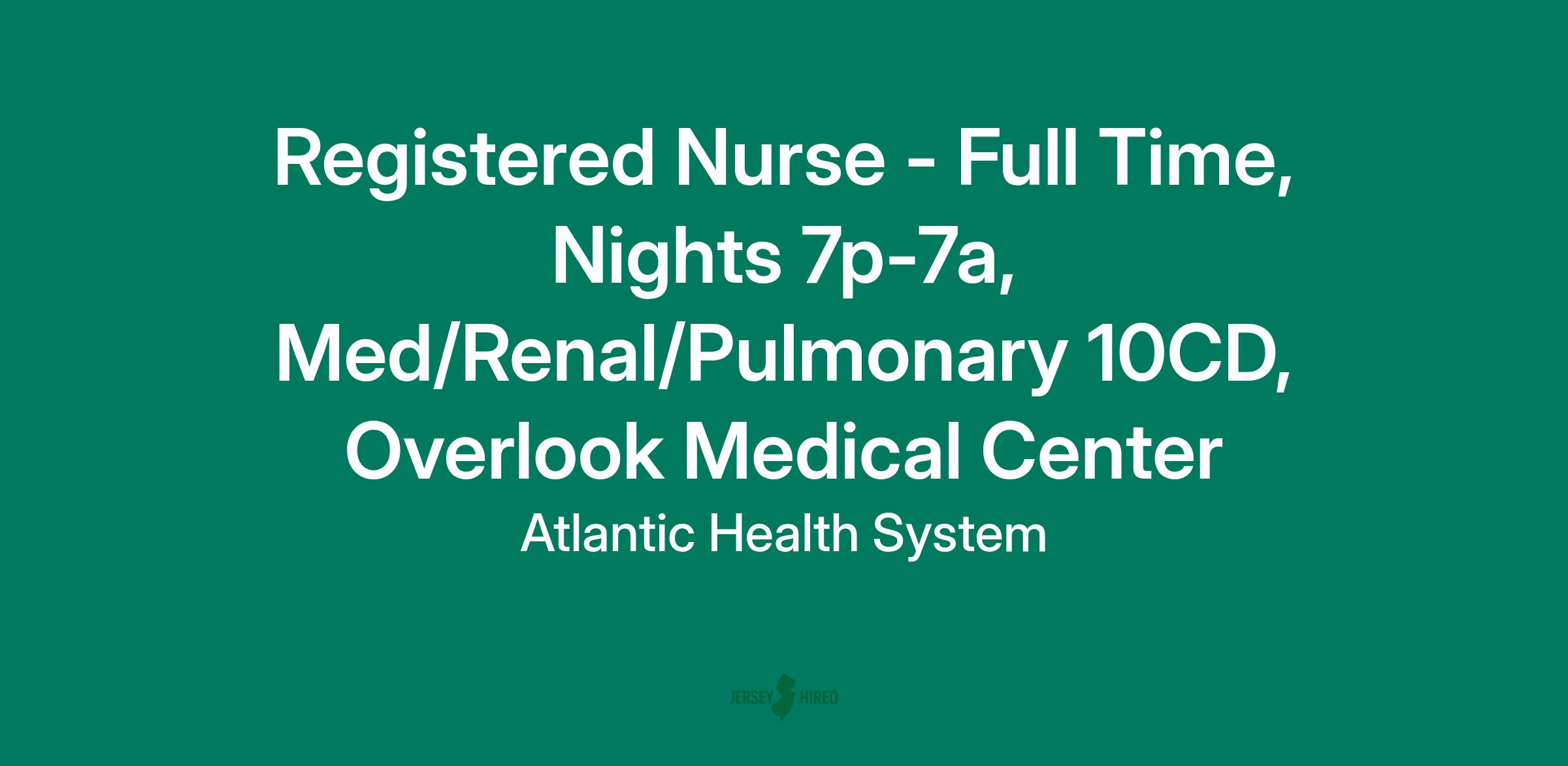 Registered Nurse - Full Time, Nights 7p-7a, Med/Renal/Pulmonary 10CD, Overlook Medical Center