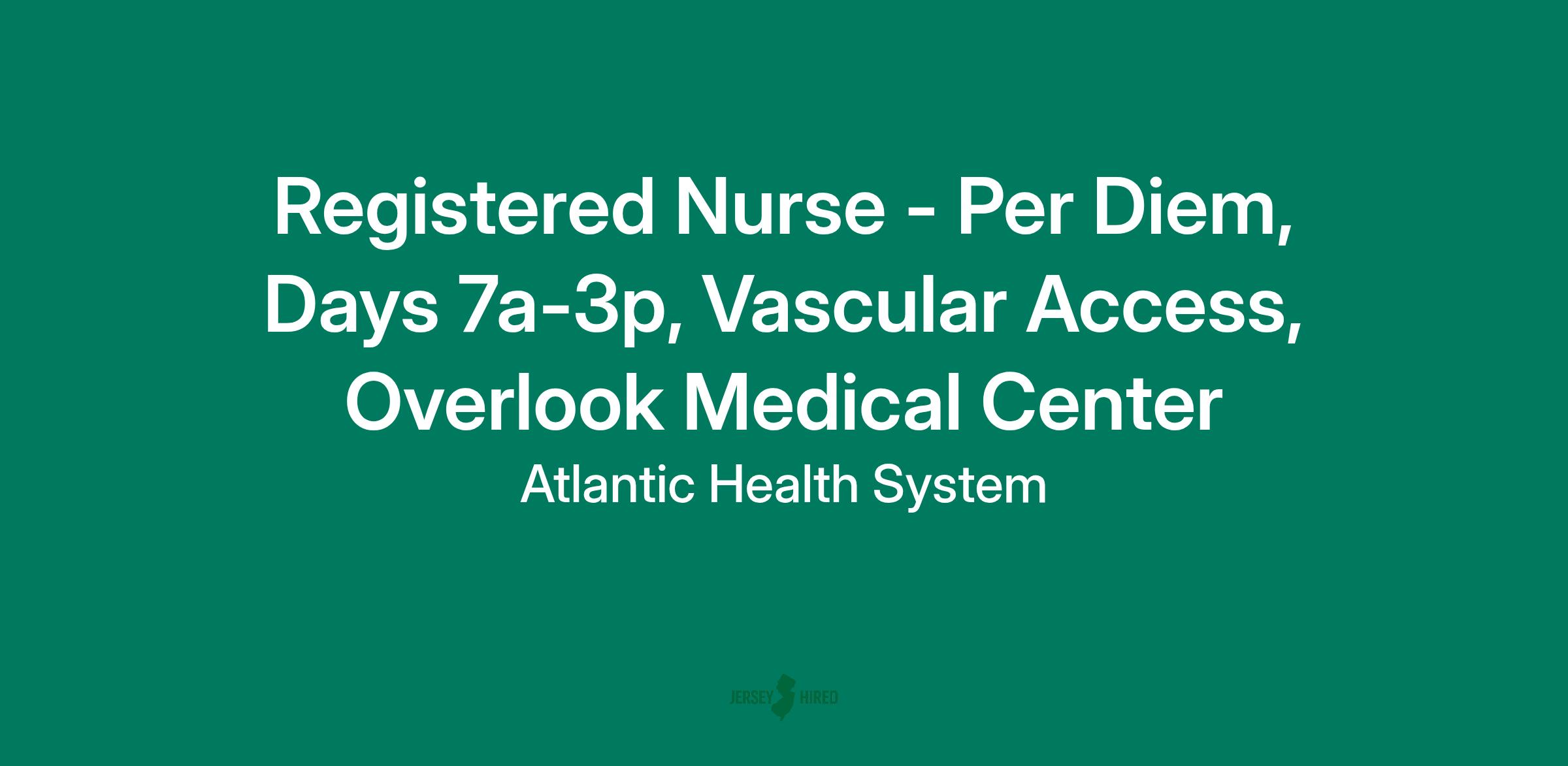 Registered Nurse - Per Diem, Days 7a-3p, Vascular Access, Overlook Medical Center