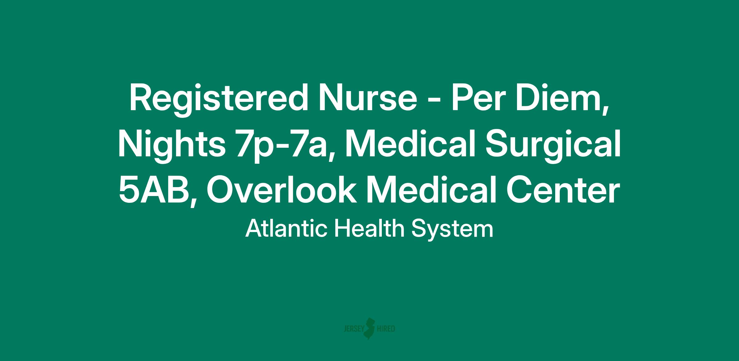 Registered Nurse - Per Diem, Nights 7p-7a, Medical Surgical 5AB, Overlook Medical Center