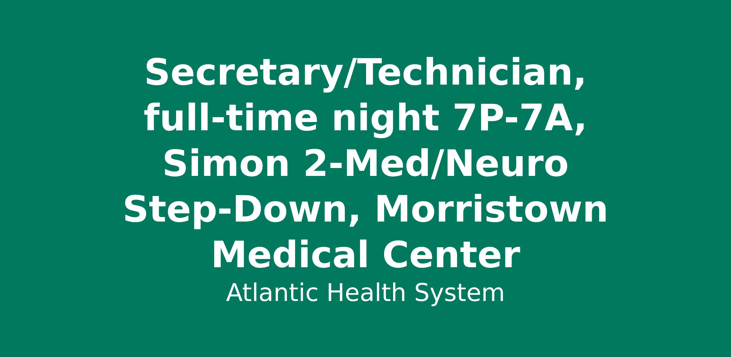 Secretary/Technician, full-time night 7P-7A, Simon 2-Med/Neuro Step-Down, Morristown Medical Center