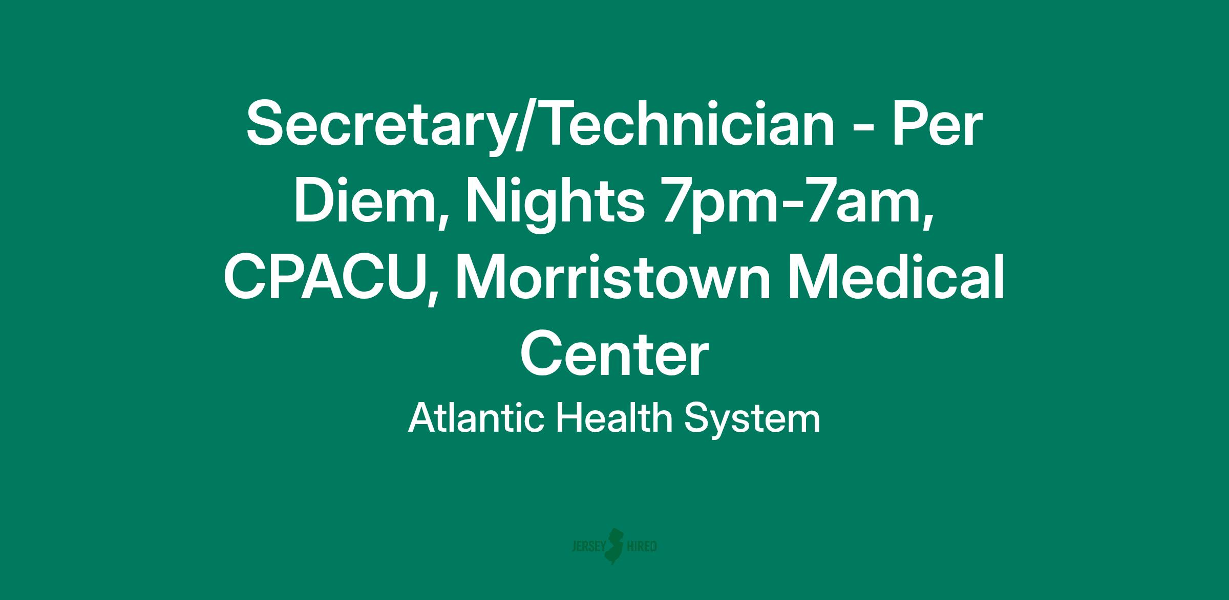 Secretary/Technician - Per Diem, Nights 7pm-7am, CPACU, Morristown Medical Center
