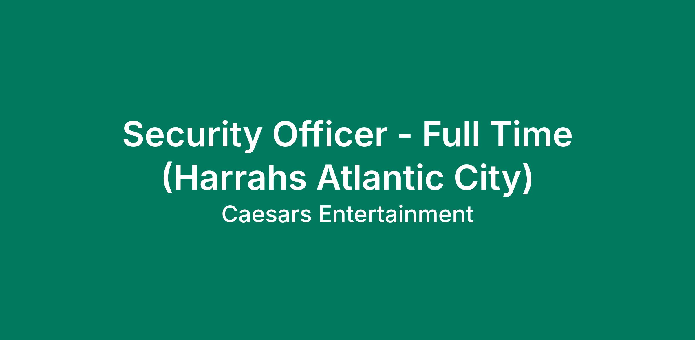 ESSENTIAL FUNCTIONS: Consistently demonstrates superior customer service skills by displaying outlined service behaviors. Maintains an upbeat and positive attitude, creates positive energy with gestures and sustains enthusiasm from one interaction to the next. Creates an atmosphere of luck and celebrates guest s wins. Is ready to serve and is informed of daily information; builds relationships by greeting guests with a warm, friendly verbal greeting. Anticipates needs and provides fast, flawless service. Checks for satisfaction and effectively resolves service breakdowns when they exist. Promotes Caesars Rewards programs and card membership. Provides a warm farewell and thanks guests for visiting.Enforces company security/safety regulations. Guards transfer of money and chips from Change Booth to Main Cage. Performs all security/safety related duties for Casino Hotel. Represents company and its property to ensure all Casino regulations are adhered to at all times. Operations motorized vehicle, i.e. company van. Participates in the supervision, operation and/or support of Harrah s multi-casino Bad Beat system. EDUCATION/SKILLS/EXPERIENCE: High School Diploma. Interpersonal and communication skills. Physically able to stand and walk for long periods of time regardless of weather conditions. Public relations a casino security experience desirable. Valid NJ State Driver s License preferred. CPR certified or ability to obtain certification required.DISCLAIMER: This is not necessarily an exhaustive list of all responsibilities, skills, duties, requirements, effort or working conditions associated with the job. While this is intended to be an accurate reflection of the current job, management reserves the right to revise the job or to require that other or different tasks be performed when circumstances change (e.g., emergencies, changes in personnel, workload, rush jobs, or technical developments). At Caesars Entertainment, Inc., our Team Members create the extraordinary. We are the largest casino-entertainment company in the U.S. and one of the world s most diversified casino-entertainment providers. Since beginning in Reno, Nevada, in 1937, Caesars Entertainment has grown through the development of new resorts, expansions and acquisitions. Our resorts operate primarily under the Caesars, Harrah s, Horseshoe and Eldorado brand names. We focus on building loyalty and value with our guests through a combination of impeccable service, operational excellence and technological leadership. The company is committed to its Team Members, suppliers, communities and the environment through its PEOPLE PLANET PLAY framework. Our Caesars family is driven by our Mission, Vision and Values. We take great pride in living these values - Together We Win, All In On Service and Blaze the Trail - every day. Our mission, Create the Extraordinary . Our vision, Create spectacular worlds. That immerse, inspire and connect you. We don t perform magic; we create it with excellence. WeAreCaesars . If you are ready to create some magic, we invite you to explore our dynamic, yet unique, career opportunities.FULL TIME - MUST BE ABLE TO OBTAIN NJ CER 35 LICENSE