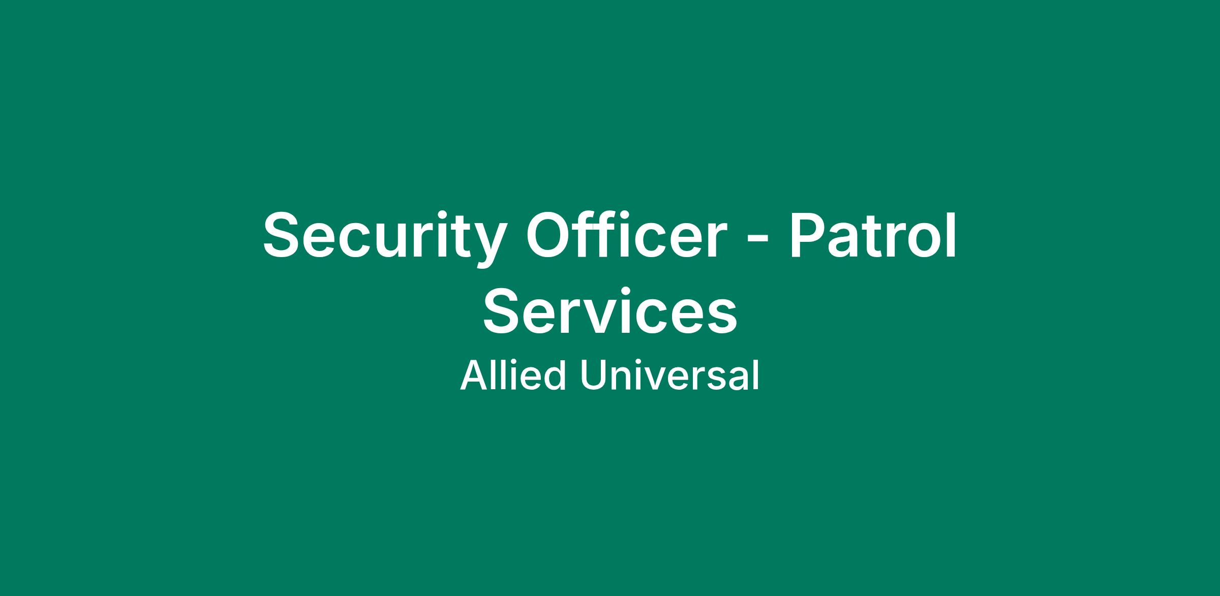 Allied Universal® is an Equal Opportunity Employer. All qualified applicants will receive consideration for employment without regard to race/ethnicity, age, color, religion, sex, sexual orientation, gender identity, national origin, genetic information, disability, protected veteran status or relationship/association with a protected veteran, or any other basis or characteristic protected by law. For more information: www.aus.com.