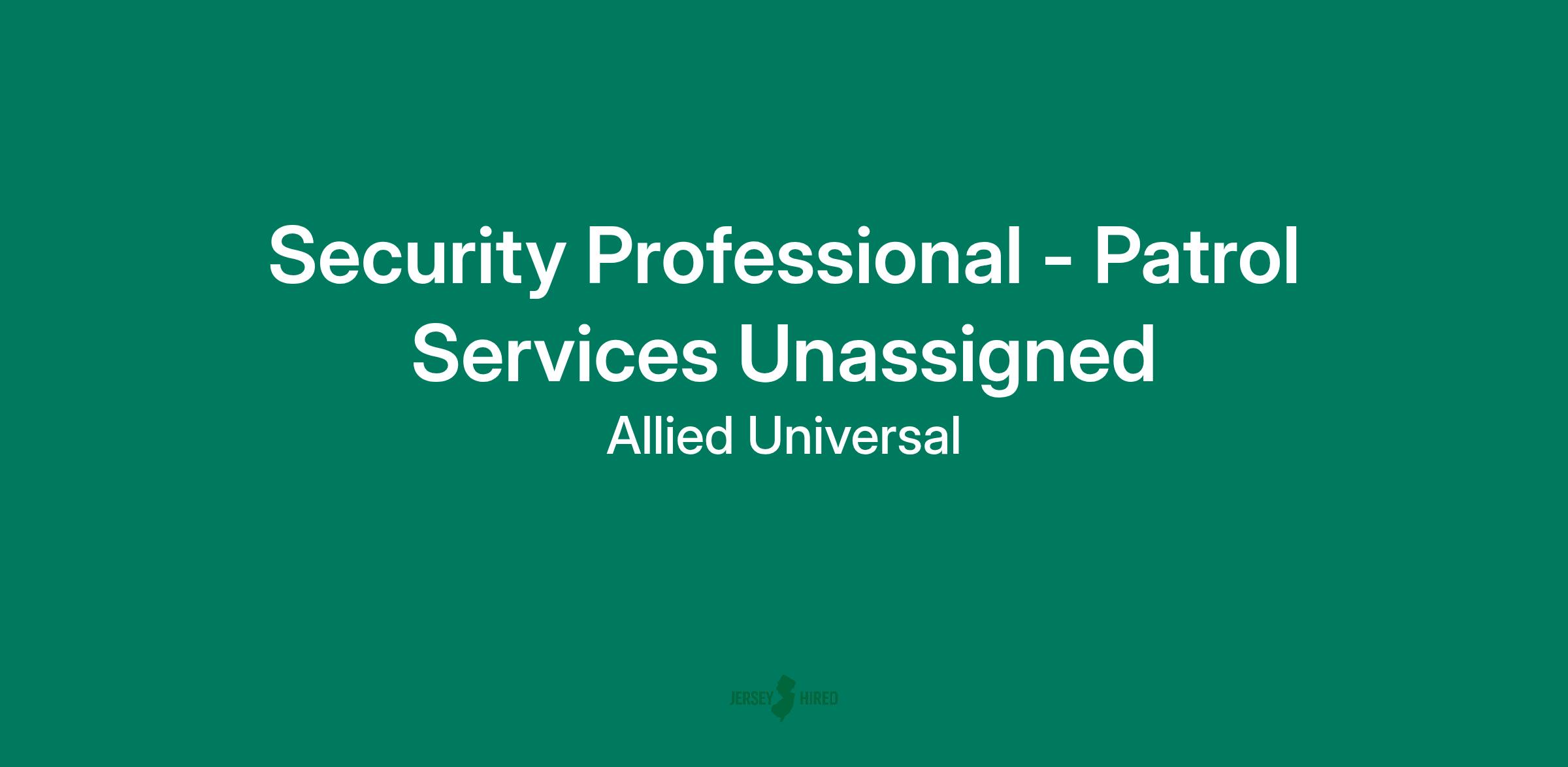 As a Security Professional - Patrol Services Unassigned in Mount Laurel, NJ, you will serve and safeguard clients in a range of industries.