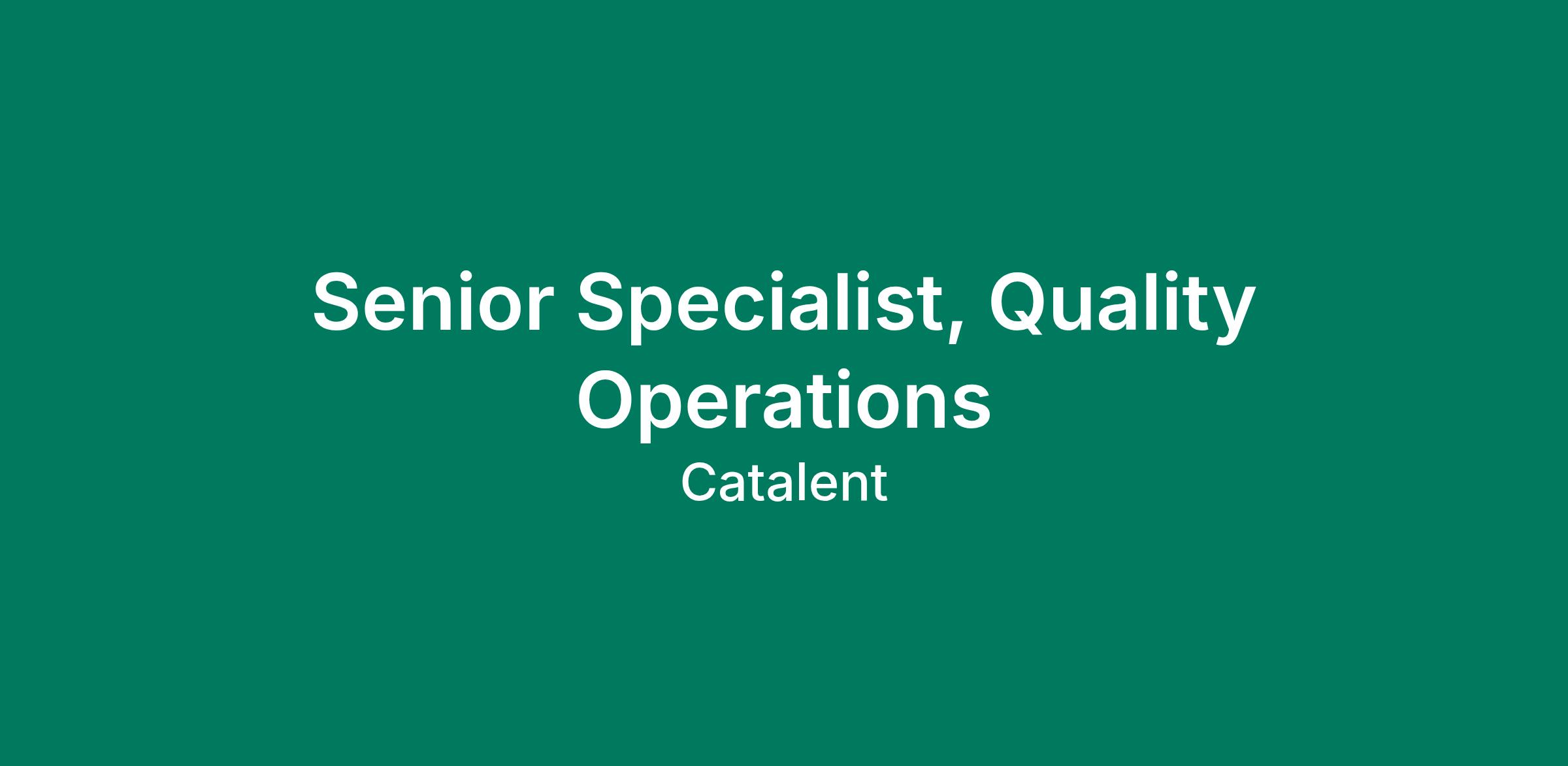 Senior Specialist, Quality Operations