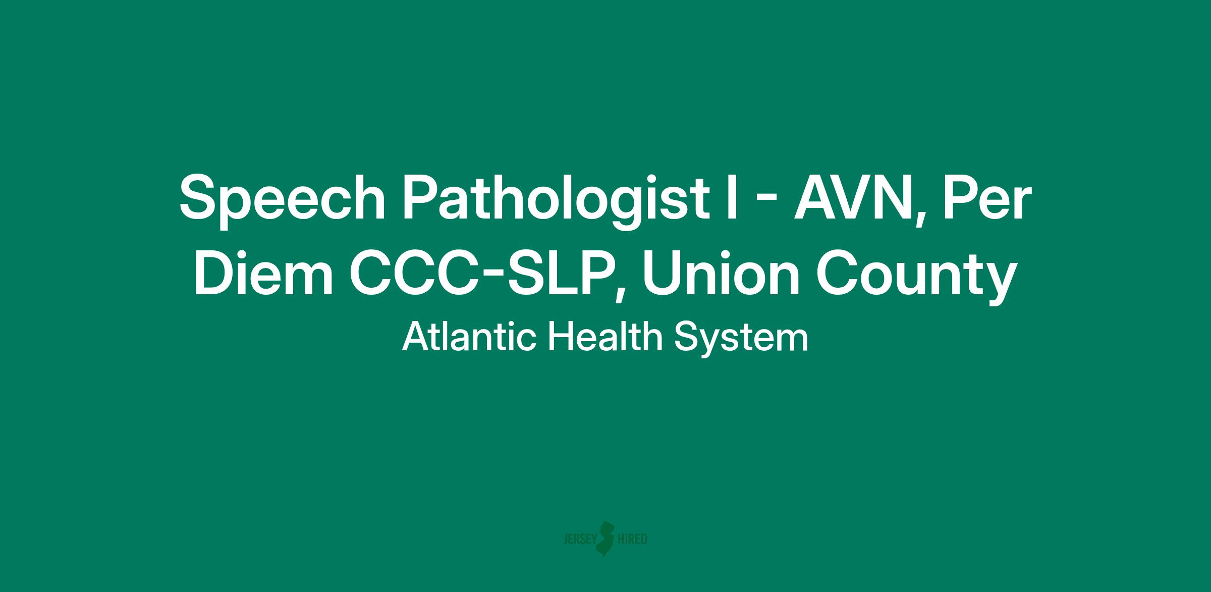 Atlantic Health System is seeking a dynamic and motivated individual, to join the energetic and innovative team of healthcare professionals in their Atlantic Visiting Nurse Division as a Per Diem Speech Pathologist in Union County. The ideal candidate will evaluate and treat patients in the patient's home and be a part of a collaborative team of health providers. Weekends not required and hours of operation are Monday through Friday from 8 - 4pm.