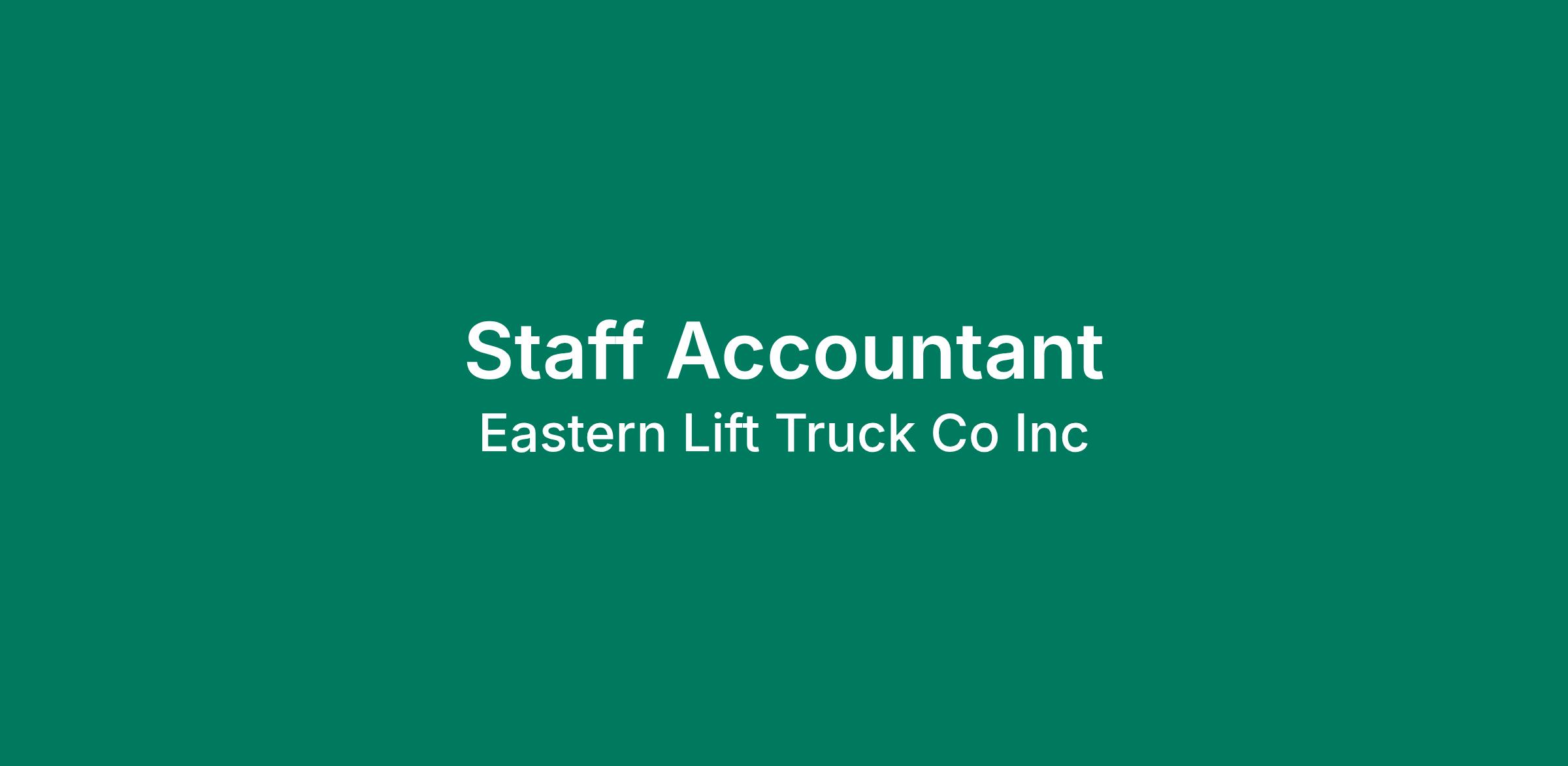 Eastern Lift Truck Co., Inc. Staff Accountant Eastern Lift Truck Co., Inc. (ELTC) is seeking a Staff Accountant to join our Finance and Accounting team. This role offers an excellent opportunity to gain exposure to a wide range of accounting and financial functions. The ideal candidate is a motivated, detail-oriented professional who is eager to develop their skills and contribute to a dynamic accounting environment with opportunities for advancement.Main Duties:The Staff Accountant will support the Finance and Accounting team across a variety of core accounting functions, including: