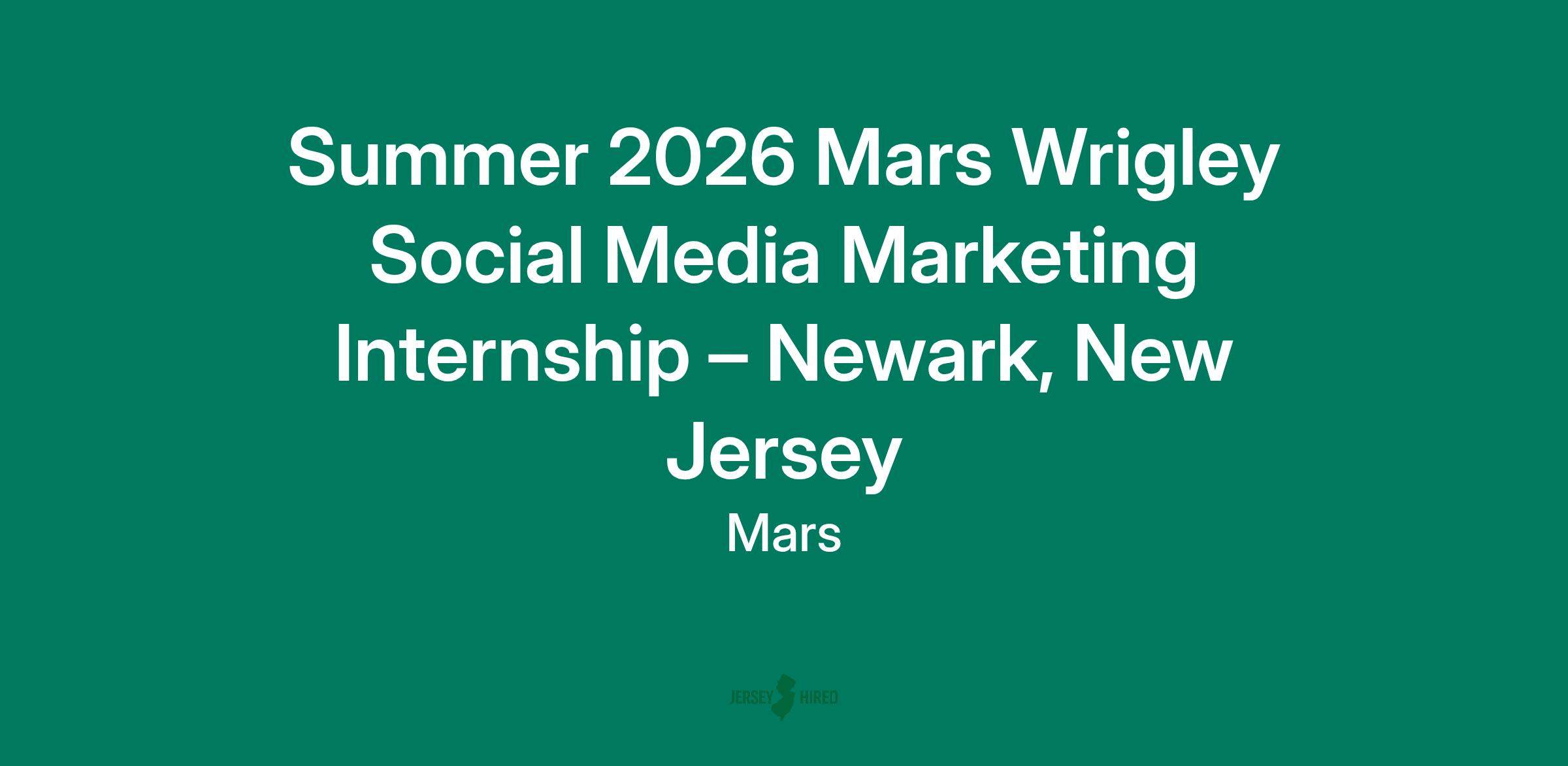 Summer 2026 Mars Wrigley Social Media Marketing Internship – Newark, New Jersey