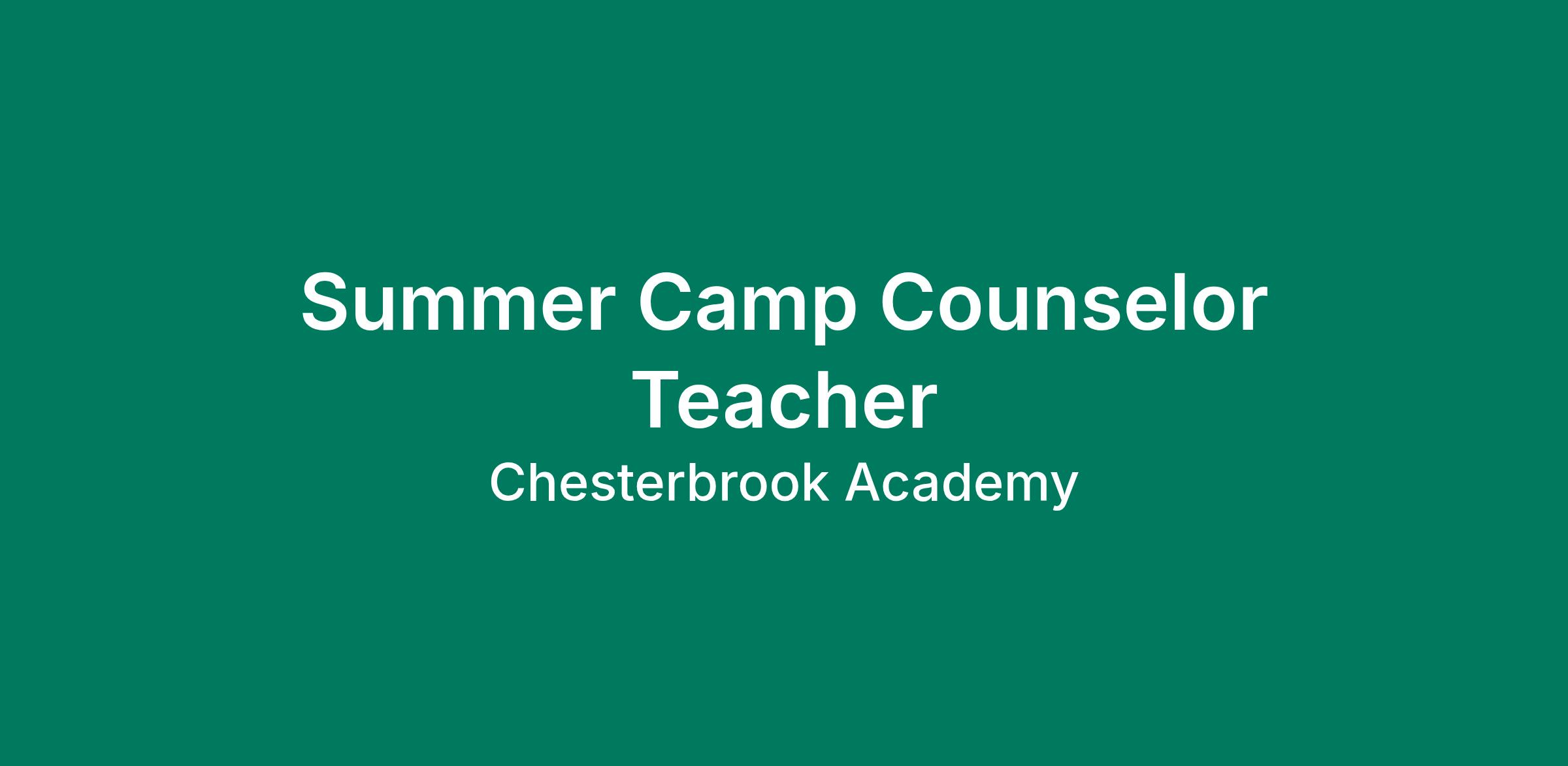 Spring Education Group's Early Childhood Education Division includes nearly 150 schools offering services from infant care through Pre-K/K programs, as well as summer camp and after-school programs . Our locations span a nationwide geographic footprint and a diverse array of pedagogical approaches - including our proprietary Links to Learning curriculum that draws from the collective expertise of renowned early-age educators such as Dewey, Piaget and Vygotsky; Montessori schools that embrace both accredited Montessori methods - AMI (Association Montessori Internationale ) and AMS (American Montessori Society); and progressive language immersion programs in Mandarin and Spanish. Join our fun, energetic Summer Camp Team at Chesterbrook Academy! We're looking for enthusiastic educators who are ready to bring learning, laughter, and adventure to life this summer. As a Summer Camp Teacher , you'll create unforgettable experiences for children through hands-on activities, outdoor exploration, and themed learning adventures that make every day exciting and meaningful. What You'll Do: Lead engaging activities including arts, science, games, and field trips Foster a safe, nurturing environment where every camper feels included and confident Encourage teamwork, creativity, and curiosity Partner with other teachers and leaders to deliver a well-organized, enriching camp program Requirements Must be at least 18 years of age and meet state licensing requirements. Prior experience working with children in a school, camp, or recreation program A passion for helping children learn, grow, and have fun Reliable, flexible, and positive attitude Authorization to work in the United States Why Join Chesterbrook Academy Competitive pay and comprehensive benefits Supportive, team-focused environment Opportunity to make a lasting impact on children's summer experience Access to future full-time opportunities within our school network If you're ready to spend your summer inspiring young minds, building friendships, and to help us continue developing the best schools and educators in America- apply today! To perform this job successfully, an individual must be able to perform each essential duty satisfactorily. Reasonable accommodations may be made to enable qualified individuals with disabilities to perform the essential functions. In general, this position requires an individual to frequently walk, stand, sit, squat, stoop, reach, kneel, rise from the floor, twist, listen, read, write, and speak the English language. In addition, this position often requires an individual to carry, lift, use repetitive or fine hand movements, and occasionally push, pull, or bend. This position is regularly required to hear and use clear vision with or without correction. Spring Education Group, including, but not limited to SEG Inc., and their affiliates (collectively "Company") is an Equal Opportunity Employer. All qualified applicants for employment and employees are provided equal employment opportunities, including in recruitment, hiring, and assignment, without regard to actual or perceived race, color, religion and religious creed, sex (including pregnancy and related conditions), sexual orientation, gender identity, gender expression, marital or familial status, age, national origin, ancestry, disability, genetic information, military/veteran status, or any other classification protected by federal, state, or local law. The Company expressly prohibits any form of unlawful employee or student harassment or discrimination.
