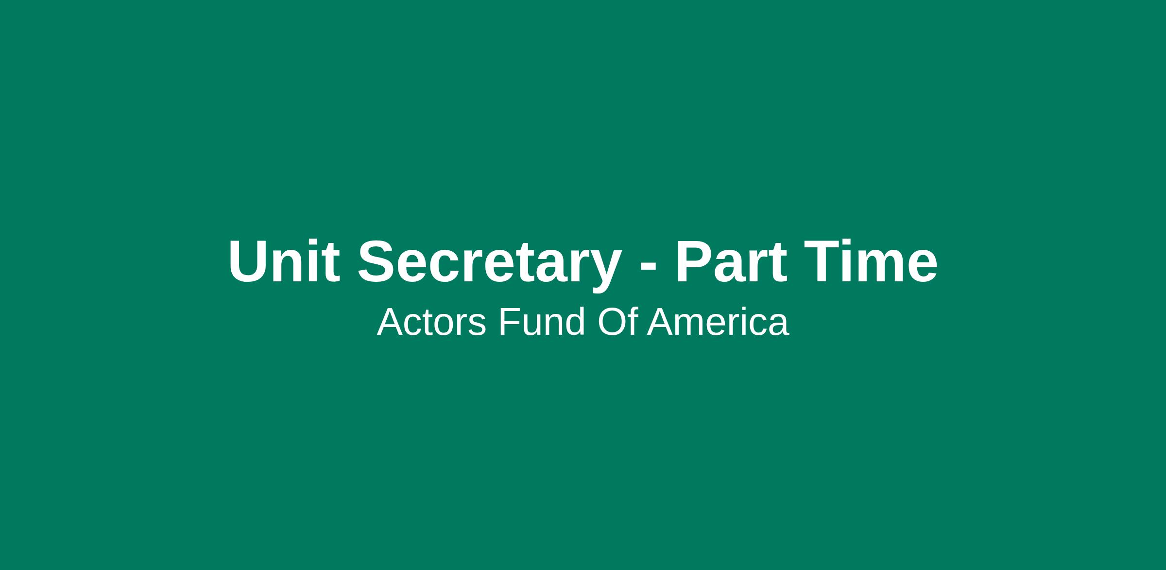 The Actors Fund Home, an assisted living, skilled nursing, accredited dementia care and sub-acute rehabilitation center located in Englewood, NJ, and a recipient of a CMS Five Star Rating seeks a Part Time Unit Secretary to perform clerical and secretarial day to day duties for the Nursing department and maintain medical records. The shift requirement for this position is 8:30am - 5:00pm Saturday and 5pm - 9pm Sunday.