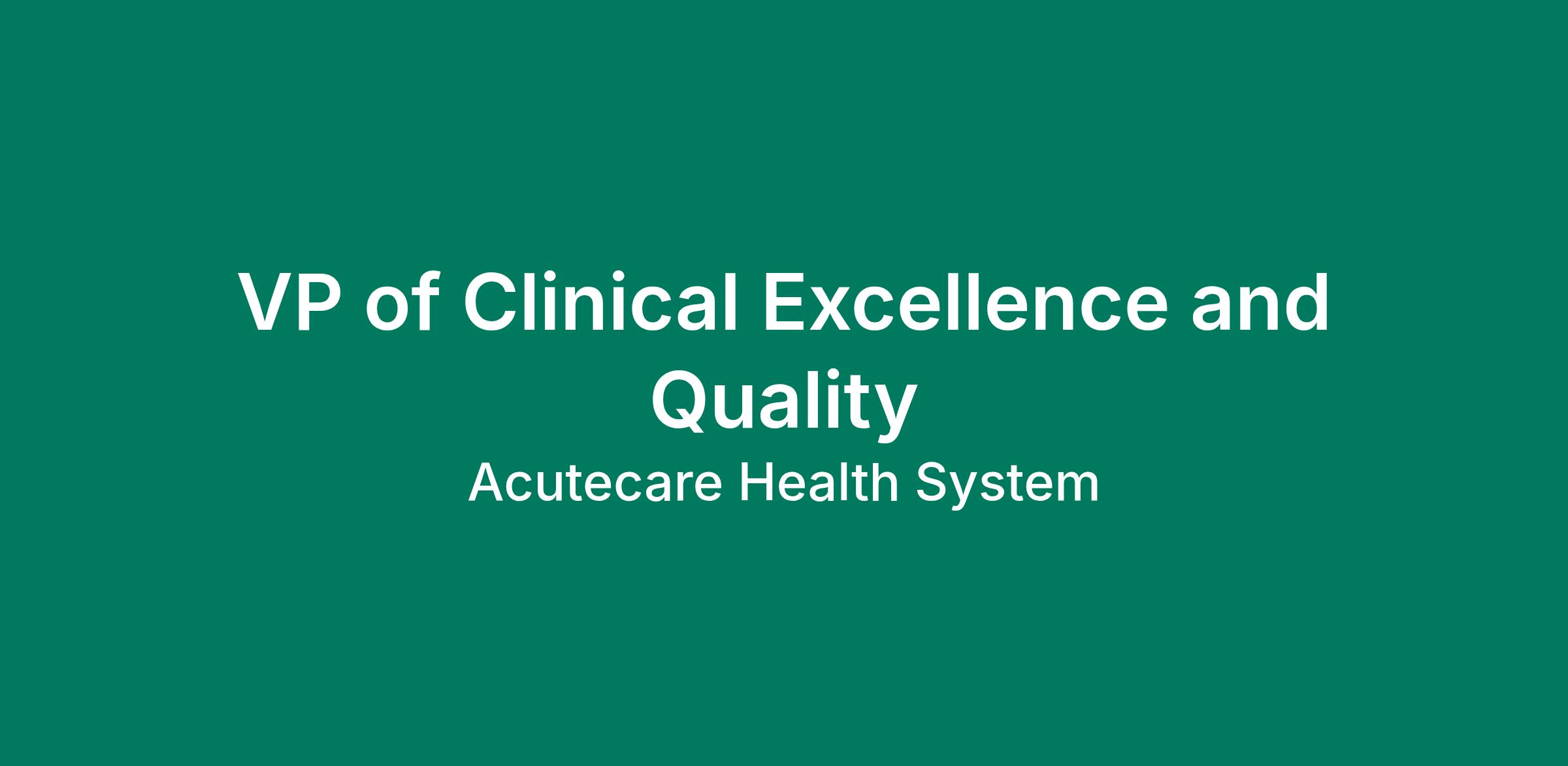 VP of Clinical Excellence and Quality