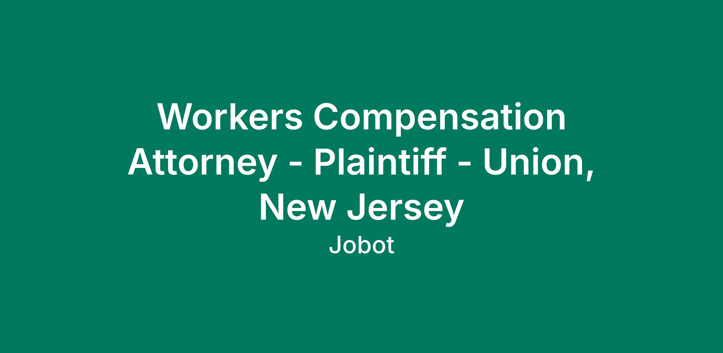 Established multi-office, 90 attorney law firm looking for a Workers Compensation Attorney - Plaintiff side out of Union, nj This Jobot Job is hosted by: Kendall Barnett Are you a fit? Easy Apply now by clicking the "Apply" button and sending us your resume. Salary: $110,000 - $170,000 per year A bit about us: Partnering with a well-respected New Jersey law firm that’s looking to add a Land Use NY/PA a plus. Interested in hearing more? Easy Apply now by clicking the "Apply" button. Jobot is an Equal Opportunity Employer. We provide an inclusive work environment that celebrates diversity and all qualified candidates receive consideration for employment without regard to race, color, sex, sexual orientation, gender identity, religion, national origin, age (40 and over), disability, military status, genetic information or any other basis protected by applicable federal, state, or local laws. Jobot also prohibits harassment of applicants or employees based on any of these protected categories. It is Jobot’s policy to comply with all applicable federal, state and local laws respecting consideration of unemployment status in making hiring decisions. Sometimes Jobot is required to perform background checks with your authorization. Jobot will consider qualified candidates with criminal histories in a manner consistent with any applicable federal, state, or local law regarding criminal backgrounds, including but not limited to the Los Angeles Fair Chance Initiative for Hiring and the San Francisco Fair Chance Ordinance. Information collected and processed as part of your Jobot candidate profile, and any job applications, resumes, or other information you choose to submit is subject to Jobot's Privacy Policy, as well as the Jobot California Worker Privacy Notice and Jobot Notice Regarding Automated Employment Decision Tools which are available at jobot.com/legal. By applying for this job, you agree to receive calls, AI-generated calls, text messages, or emails from Jobot, and/or its agents and contracted partners. Frequency varies for text messages. Message and data rates may apply. Carriers are not liable for delayed or undelivered messages. You can reply STOP to cancel and HELP for help. You can access our privacy policy here: jobot.com/privacy-policy